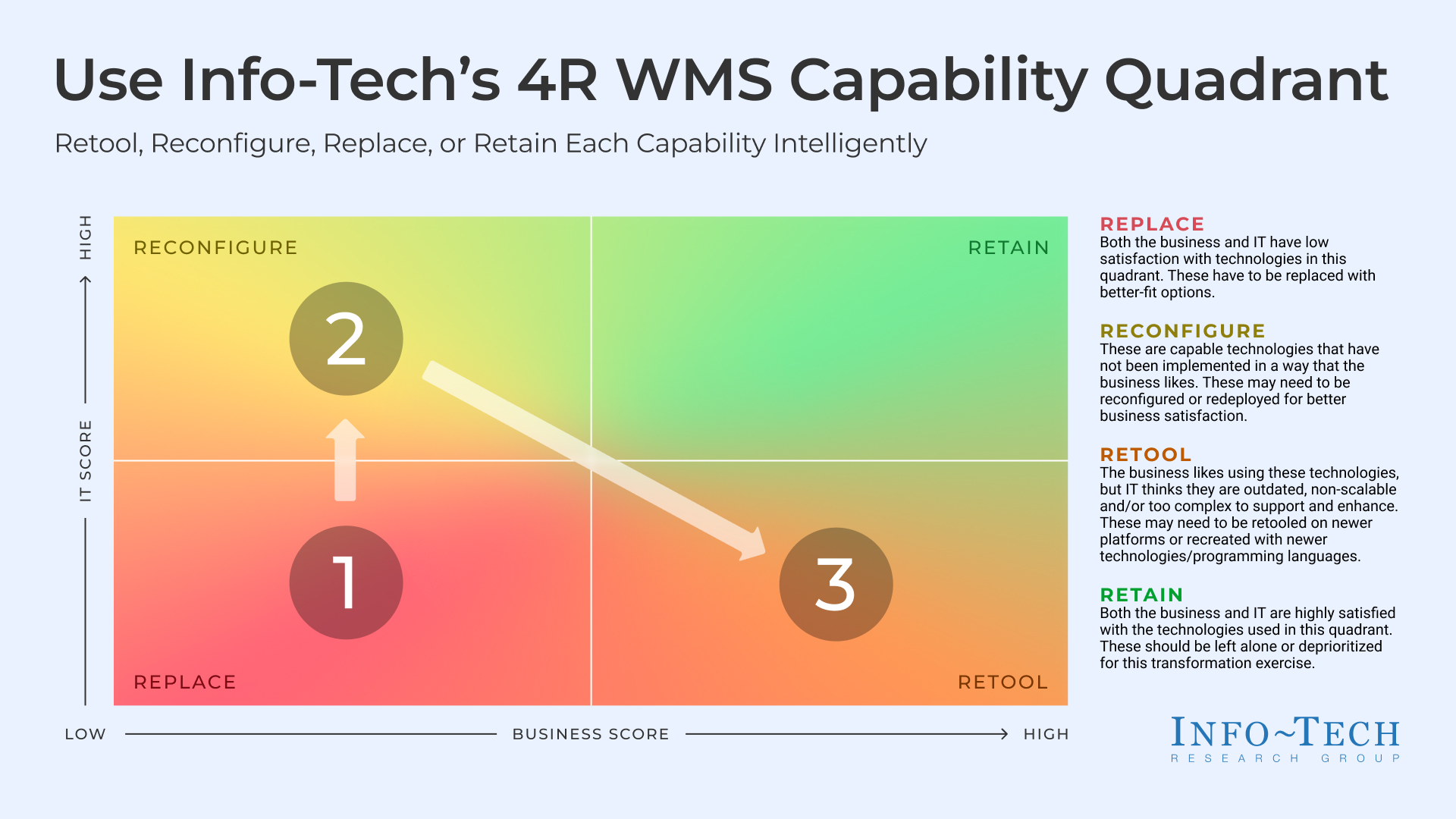CIOs must be deliberate in defining the organizational needs that drive their WMS transformation. Attempting to prioritize modernization for the sake of modernization will dilute impact, yet doing nothing under the guise of cost containment will leave you vulnerable. CIOs must build a roadmap that accounts for clear trade-offs and focused sequencing in line with what the business wants to achieve and overall resilience.