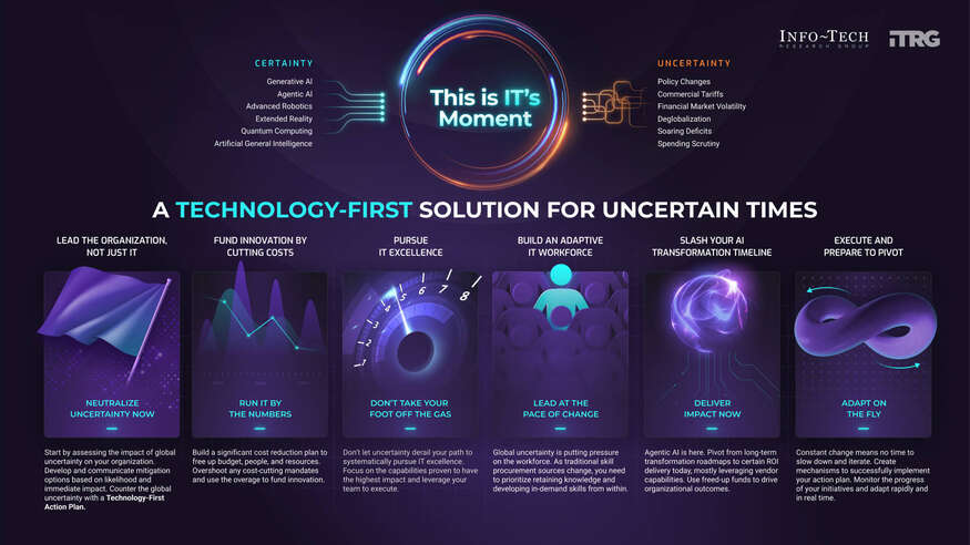 Download ResearchStart by assessing the impact of global uncertainty on your organization. Develop and communicate mitigation options based on likelihood and immediate impact. Counter the global uncertainty with a Technology-First Action Plan.