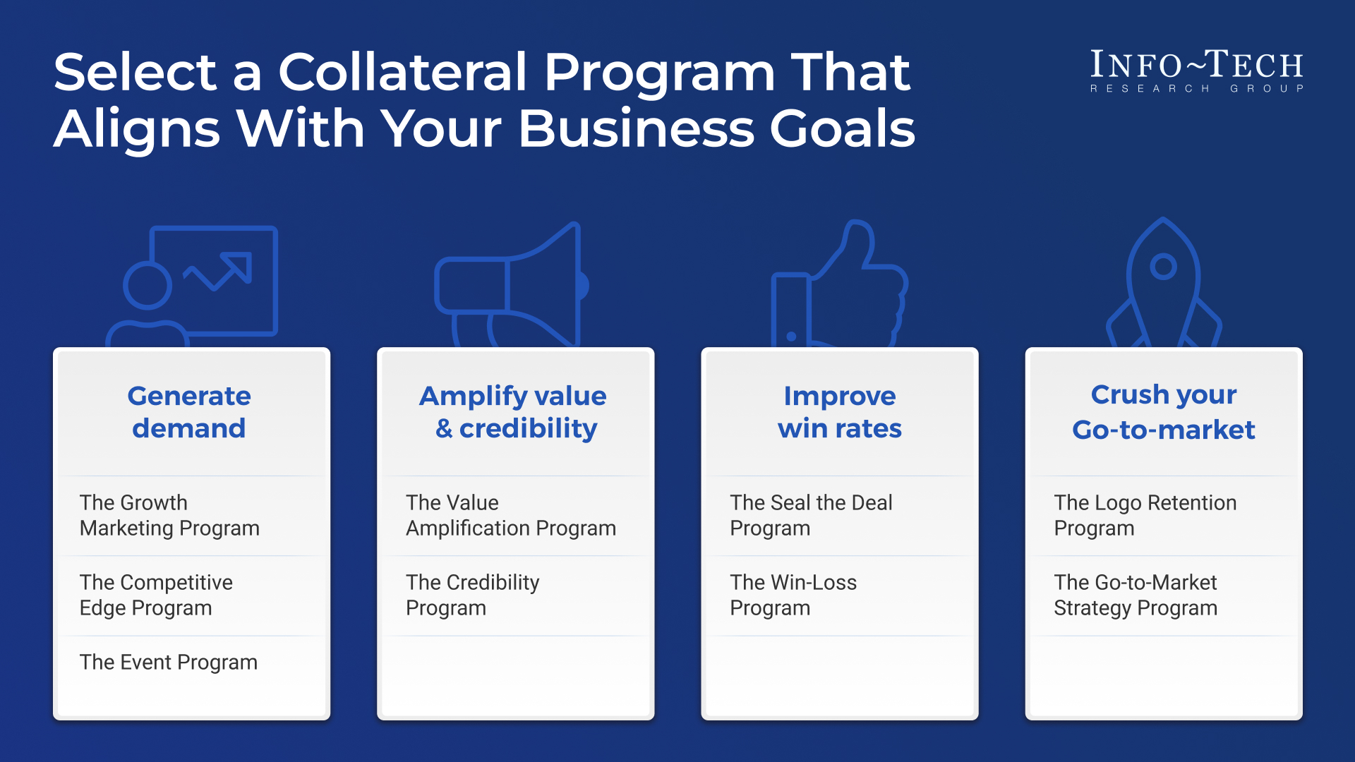 Our collateral touches every stage of the buyer journey, providing voice of the customer data that generates demand, enhances value and credibility, improves win rates, and optimizes your go-to-market strategy.